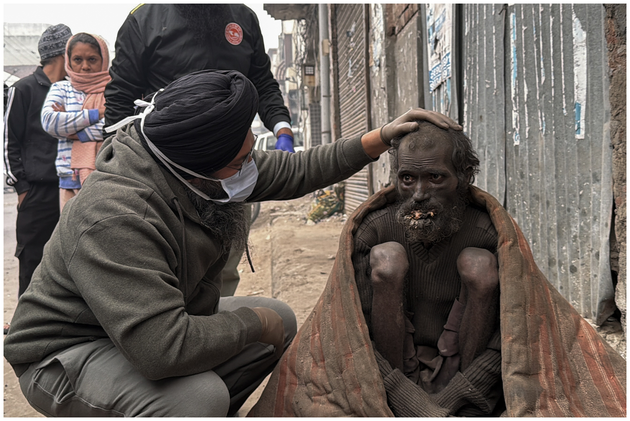 By the grace of Waheguru Ji, on 13th December 2025, the Manukhta Di Sewa family received an opportunity to serve an unidentified elderly man at Damoria Bridge, Chhawani Mohalla, Ludhiana. The elderly man was found sitting in extremely miserable and heartbreaking conditions. His situation was so painful that it brought tears to the eyes of everyone who saw him.