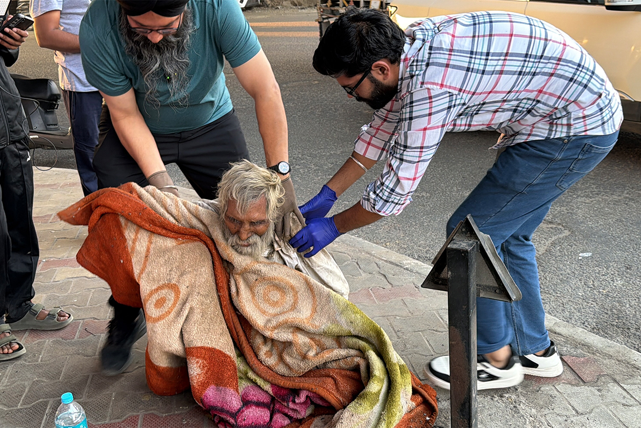 Bapu Ji was found lying in extremely poor condition. Some people around couldn’t even tell whether he was alive or had passed away. Despite his very fragile state, when the team spoke with him and asked about his family, tears began to flow from his eyes as soon as he mentioned his sons.