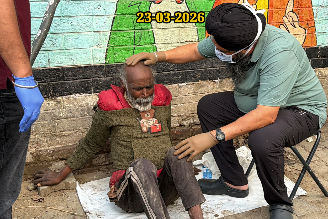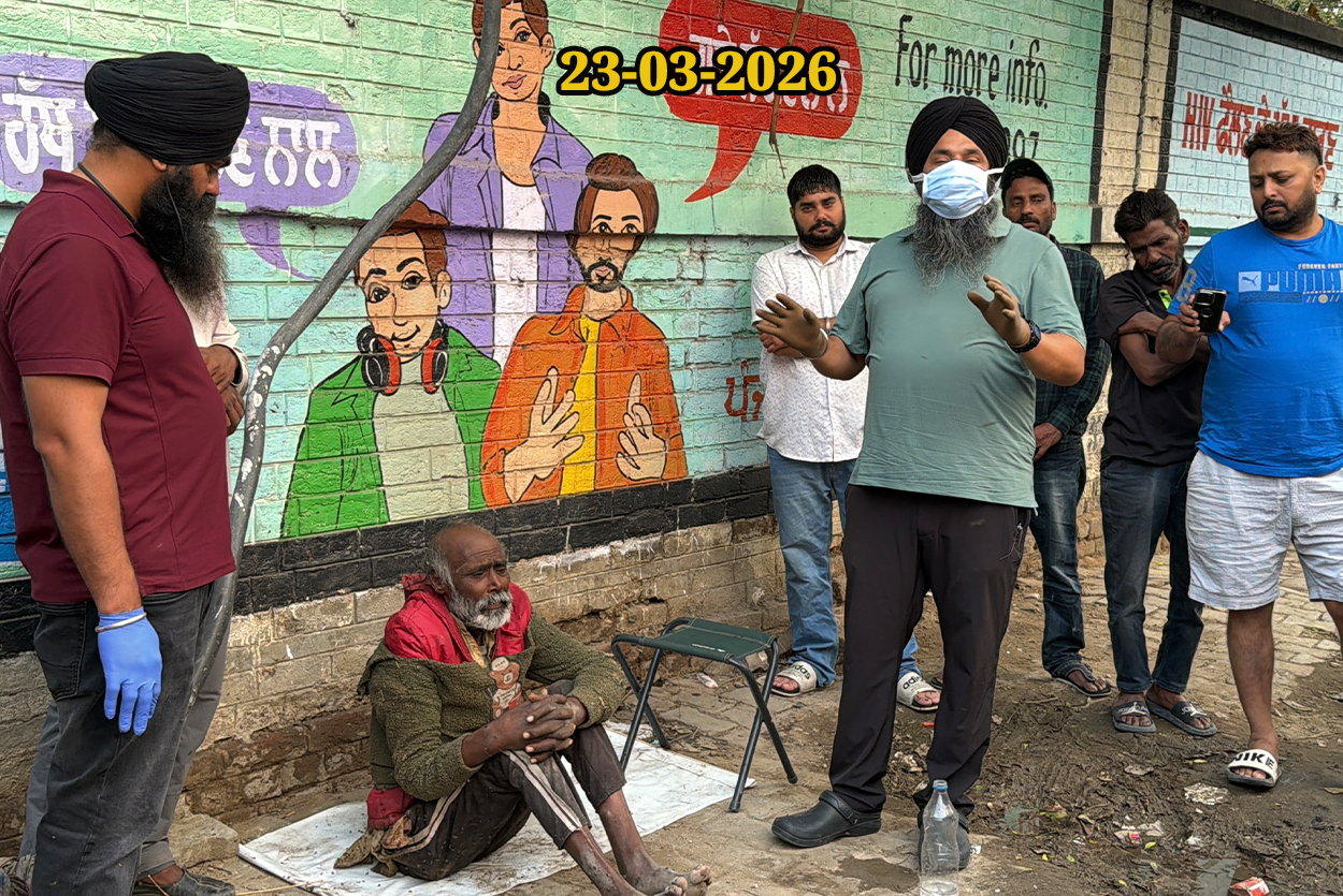 By the grace of Waheguru Ji, on 23-03-2026, the Manukhta Di Sewa family got the opportunity to serve an elderly man who identified himself as Akhlil Khan. He was found lying outside the Civil Hospital in Ludhiana.