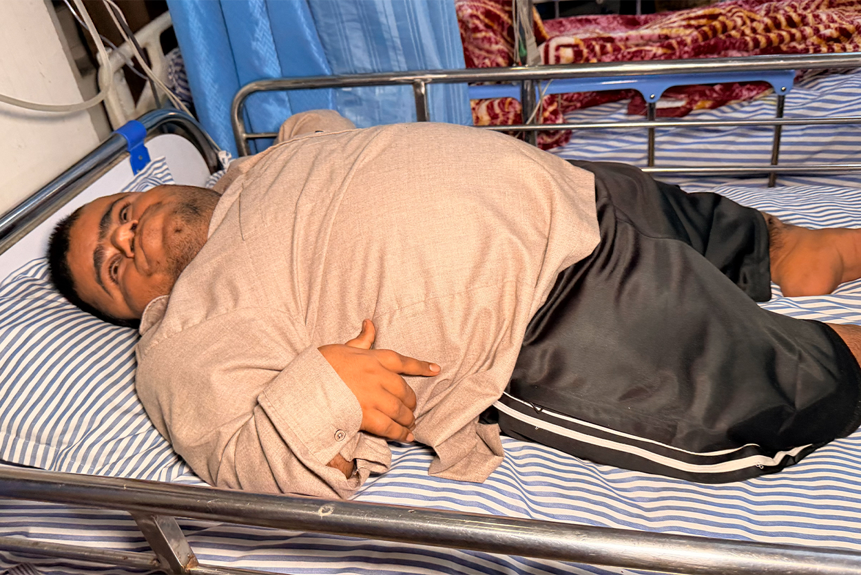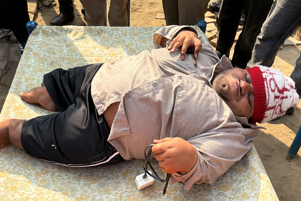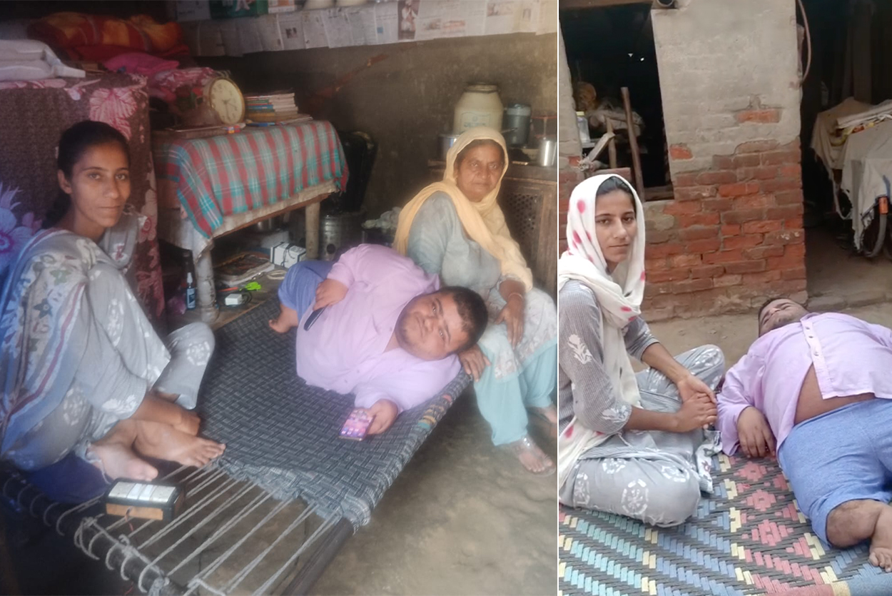 This young man has been physically disabled since birth. Being around 3 feet tall, he is unable to walk or even sit, and has been spending his life confined to a cot. The only person taking care of him at home is his sister.
